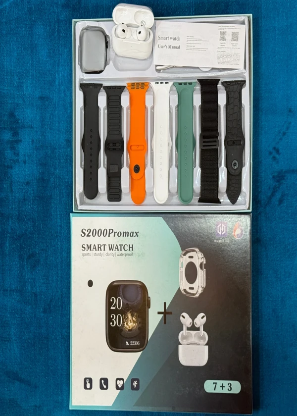 S2000 Promax Smart Watch হচ্ছে আধুনিক লাইফস্টাইলের জন্য একটি শক্তিশালী ও ফিচার-প্যাকড স্মার্ট ওয়াচ কম্বো, যেখানে রয়েছে ৭টি প্রিমিয়াম স্ট্র্যাপ + ৩টি এক্সক্লুসিভ এক্সেসরিজ। দৈনন্দিন ব্যবহার, অফিস, স্পোর্টস বা গিফট—সব কিছুর জন্য পারফেক্ট।